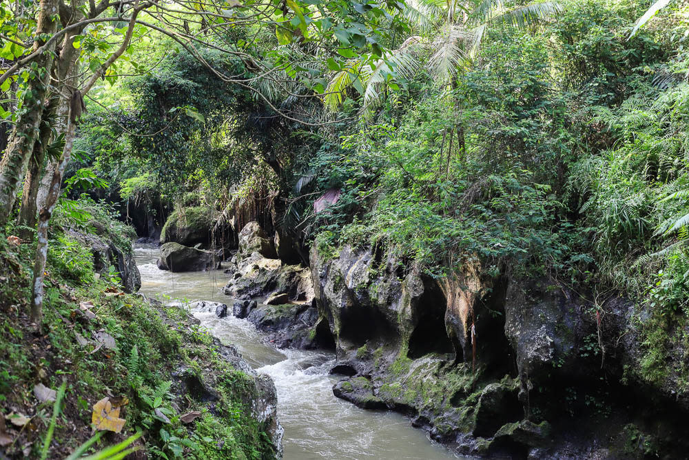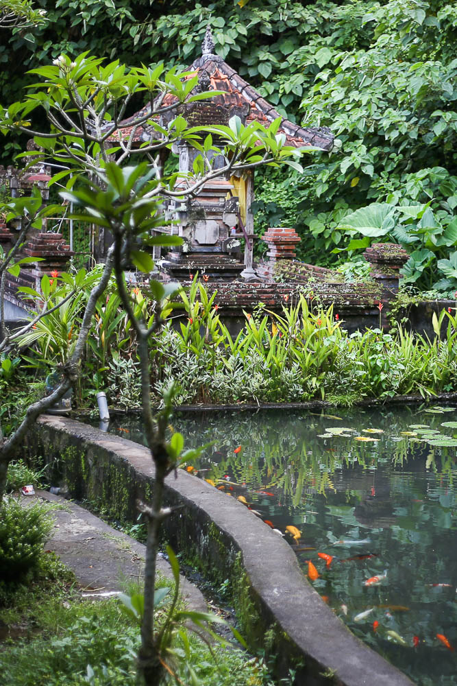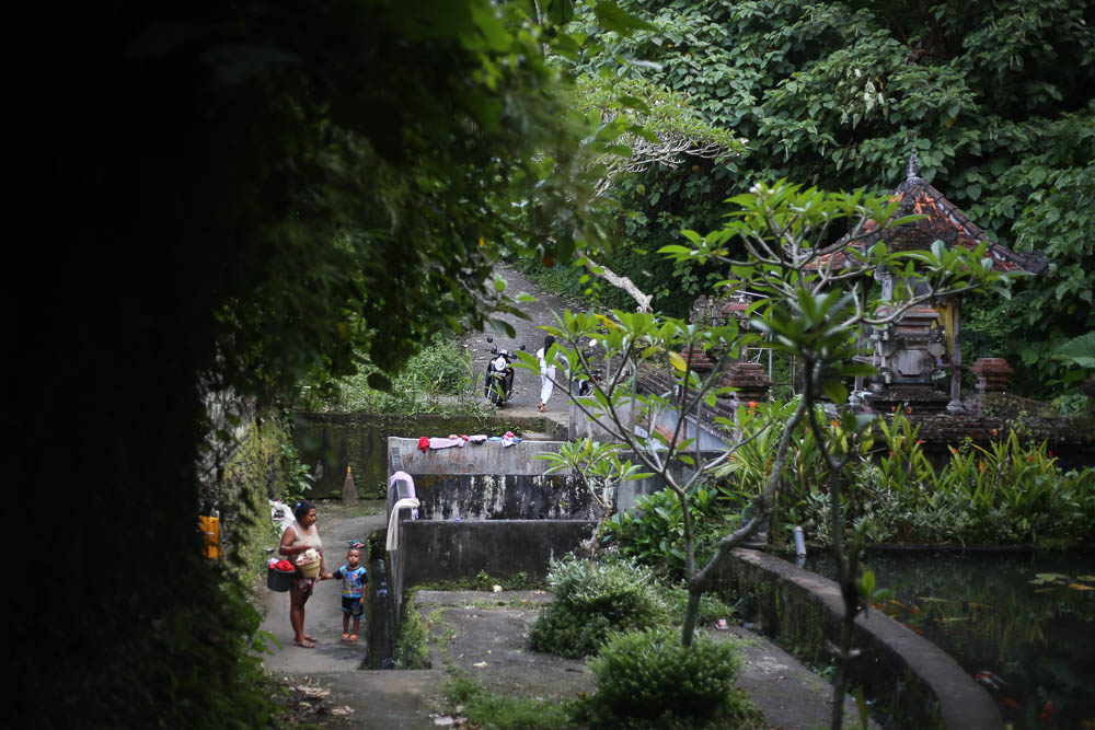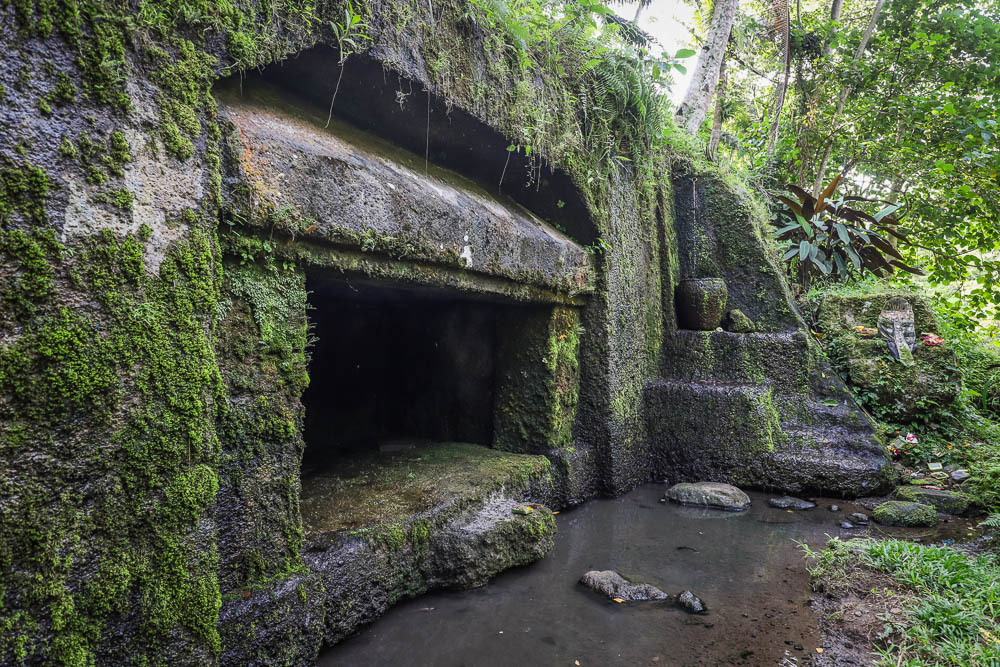 Next to the candi, water flows continuously from spouts and a small waterfall on the north side. Some 50 meters up the hill, a modern bathing area, used by the nearby residents of Singakerta village is supplied by a water-rich spring.