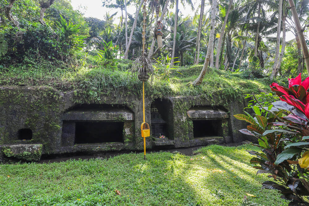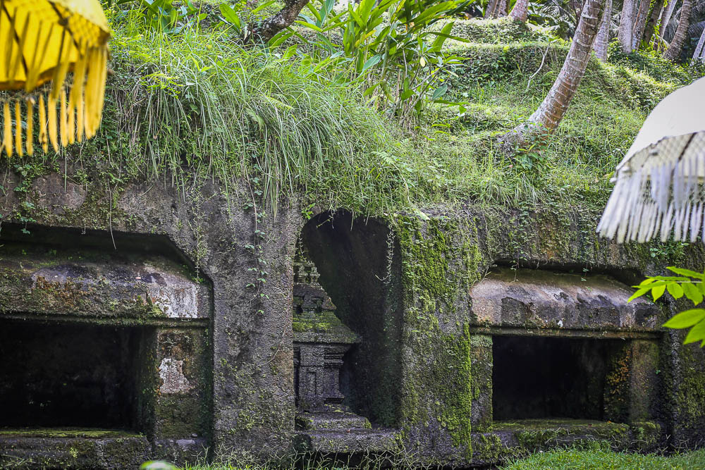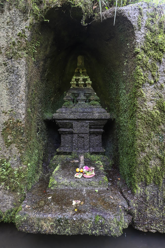 As with all Balinese candis, the rock-cut miniature temple likely served as a monument—an empty tomb of a departed ruler whose name is now lost. The caves on the sides were likely occupied by hermit caretakers, who tended the site, cleared vegetation, placed offerings, and performed rituals. Carved from living rock, the monument is partly sheltered from the elements, but any ornamentation it may once have had has vanished over the past ten centuries. Unlike some other candis, such as those at Gunung Kawi, no inscriptions survive here. The candi was most probably not a tomb: the ruler’s ashes were likely scattered elsewhere.