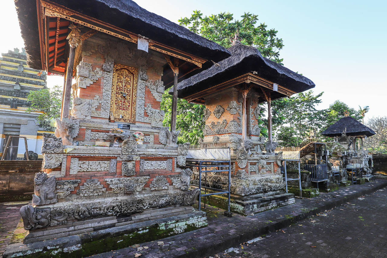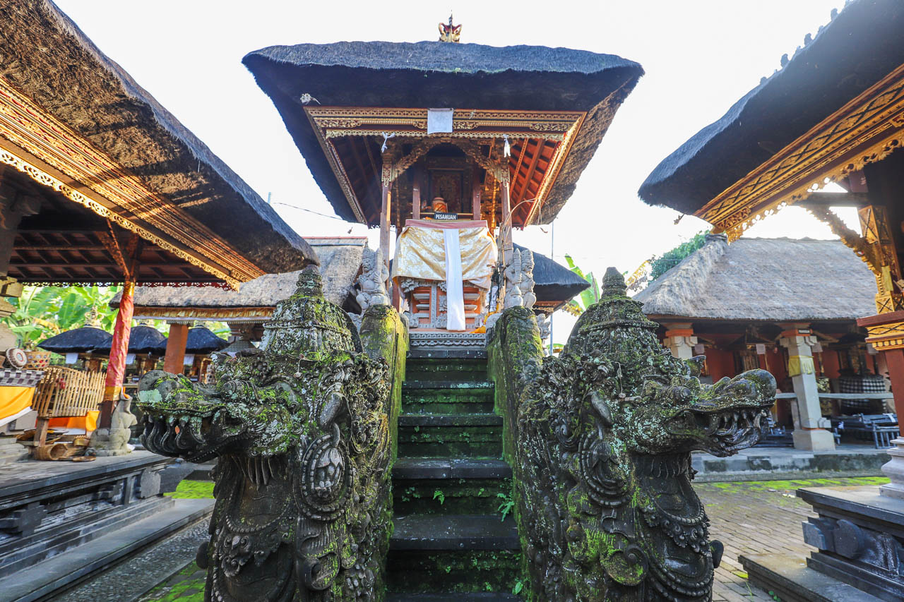 The cow statues referencing Nandi that flank the western side of the old gate (see first image) indicate a Shaivite orientation—Nandi being the mythical animal of Shiva—and connect the temple to broader networks of Shiva worship, while remaining rooted in local Balinese aesthetics.