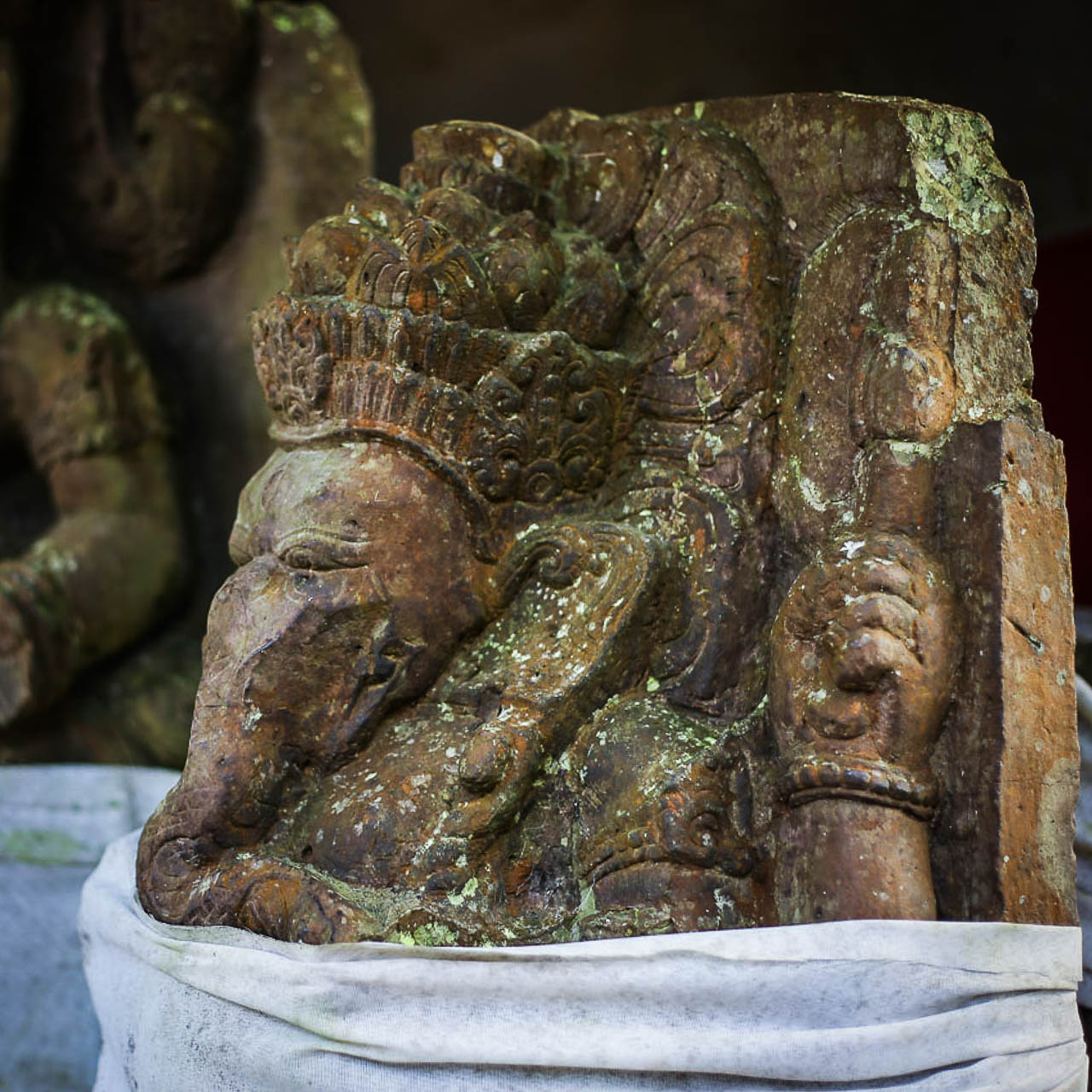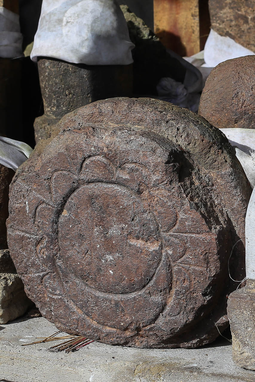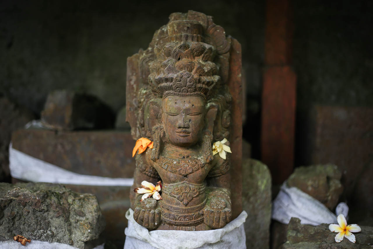 Some of the many ancient statues are of royal lineage and bear inscriptions indicating their consecration dates. The figure of Queen Bhatari Mandul, the consort of King Anak Wungsu, is dated to 1077 CE. Its inscription in the Kadiri Quadrate script closely resembles those found at Pura Gunung Kawi, which helped to date that site to the same period, the 11ᵗʰ century.