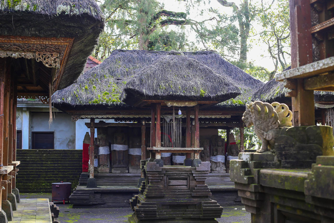 Considering its importance, you might be surprised as you walk up the stairs to find a small, simple temple — not at all grand or representative — with few carvings or ornaments. Pura Puncak Penulisan diverges in meaningful ways from standardized Balinese temple architecture. It lacks a padmasana (throne shrine), meru‑style tiered pagodas, and the Palinggih Ratu Pucak (the supreme deity’s fixed seat), all common in later temples. Local priesthood explains that the mountain itself is the deity’s throne, the summit is its symbolic meru. This aligns Penulisan with the Bali Aga tradition: older, pre‑Majapahit spiritual institutions that maintain distinct ritual practices, oral histories, and village autonomy.