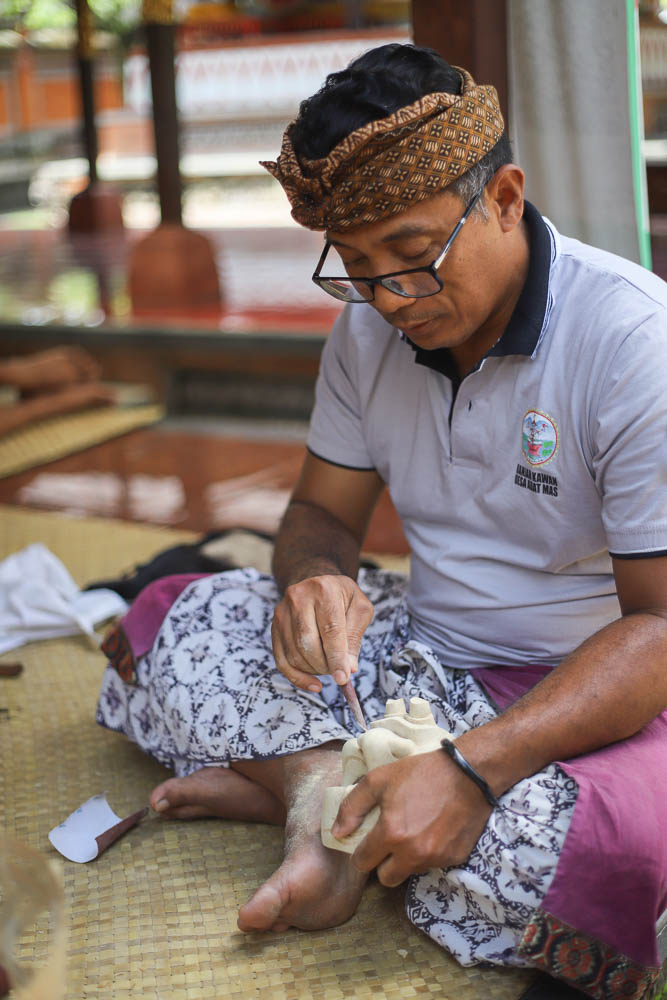 Another form of the legend of origin says that Dang Hyang Nirartha once planted a wooden stick in the ground and a miracle happened: the stick grew into a living tree with golden flowers, from which the village of Mas got its name, as it was founded by this act. He also predicted that all his descendants will live from wood – the village of Mas has been famous for woodcarving until today.