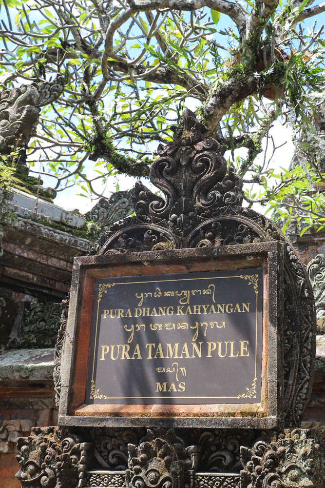 Meaning: ”Taman Pule” means “pule garden”, derived from the presence of legendary pulai (pule) trees in the temple grounds.