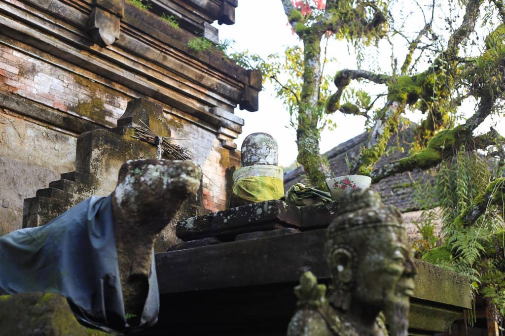 Probably the oldest relics in the temple are a lingga and a yoni, symbols of Shiva and his consort, the goddess of fertility. The rectangular yoni has a spout through which sacred water once flowed from the lingga during ancient ceremonies, symbolizing purification, life, and fertility. They are kept in the jeroan, the inner, most sacred zone of the temple, on an open altar.